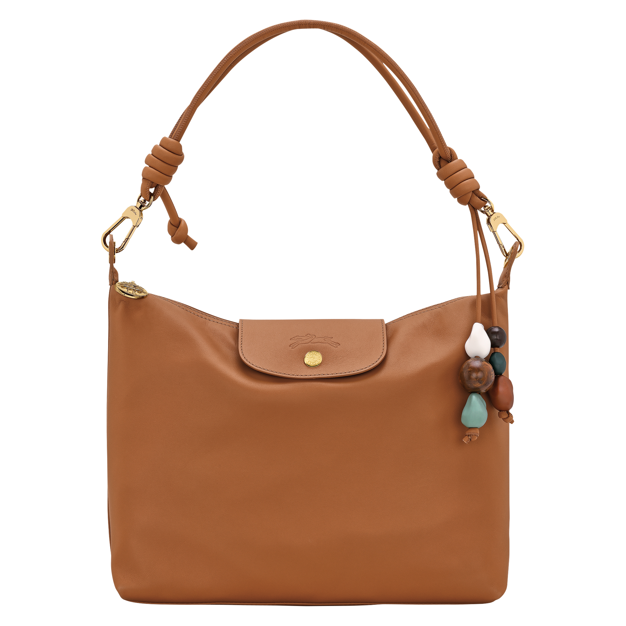 This hobo bag is perfect for everyday use. Adorned with an organically shaped beaded bag charm and an artistically knotted cord on its shoulder strap, it adds a creative, feminine touch to your look. The refined details on the smooth, supple cowhide leather give the bag an air of elegance.