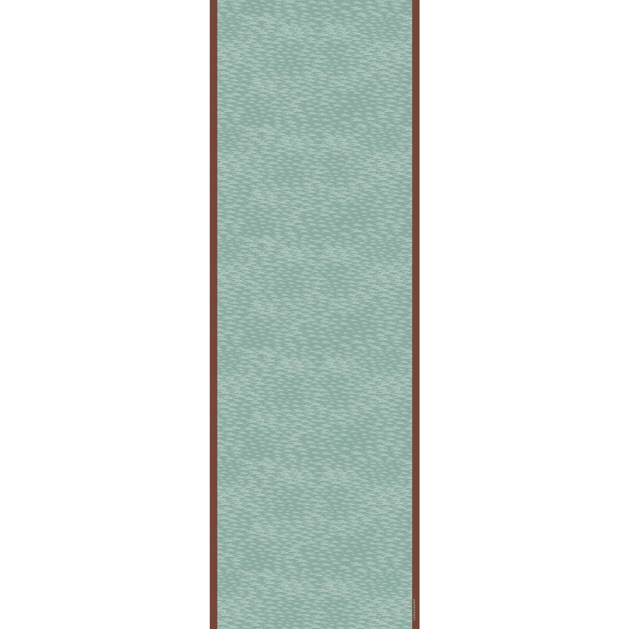 Bu şal, hazır giyim koleksiyonunun sezon baskılarından birini taşır. LONGCHAMP atının heyecanlı yarışı, her yere yayılan motif olarak tasvir edilerek bizi büyüleyici bir atlı alaya davet eder.