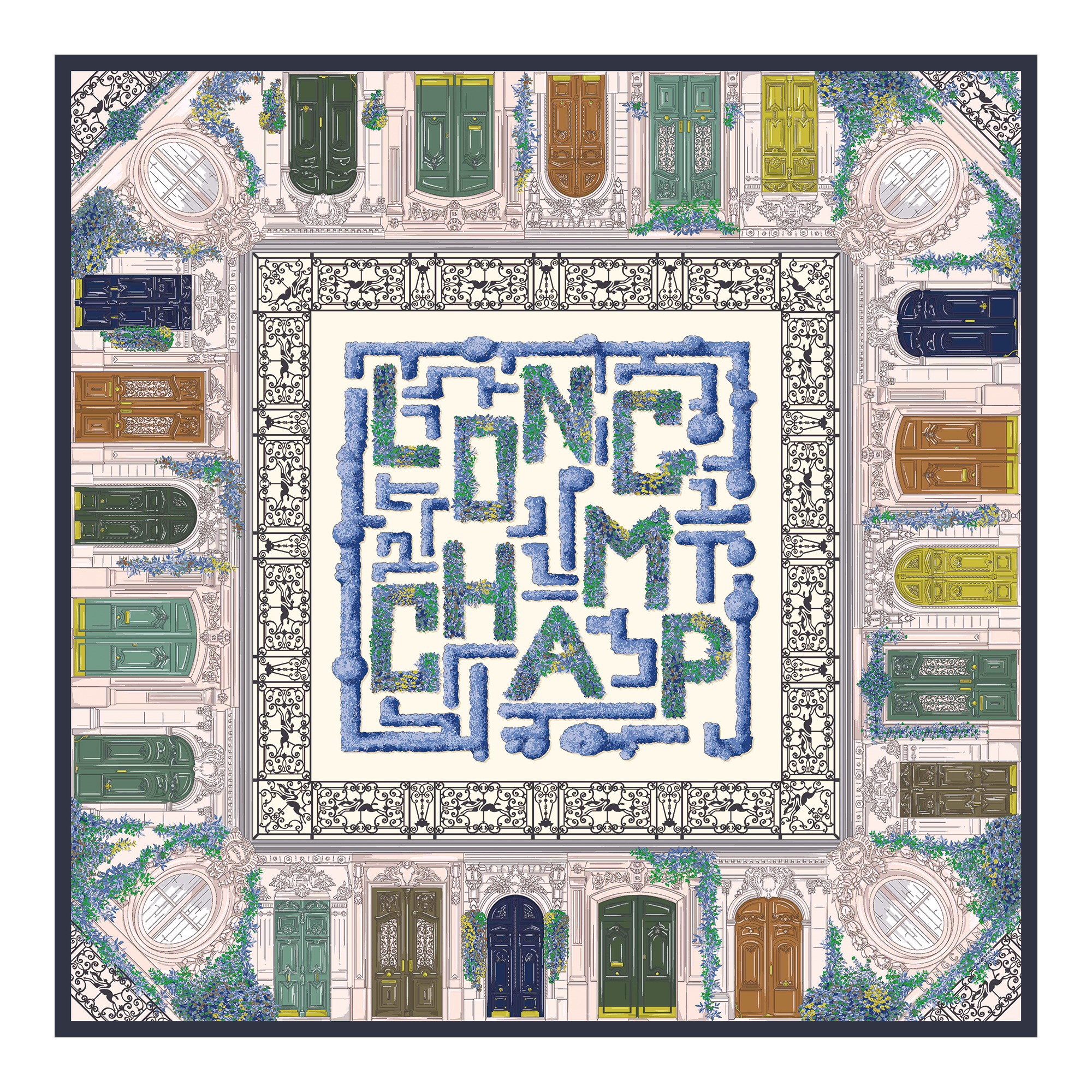 Dünyaca tanınan mimari zarafetleriyle bilinen saçaklı girişler, bu büyük ipek fuların üzerinde gizemli bir labirenti ortaya çıkararak sizi Paris’in kalbine doğru yönlendiriyor. Bu zarif parçayı omuzlarınıza alarak şık bir dokunuş katabilir ya da siluetinizi vurgulamak için kemer olarak kullanabilirsiniz.