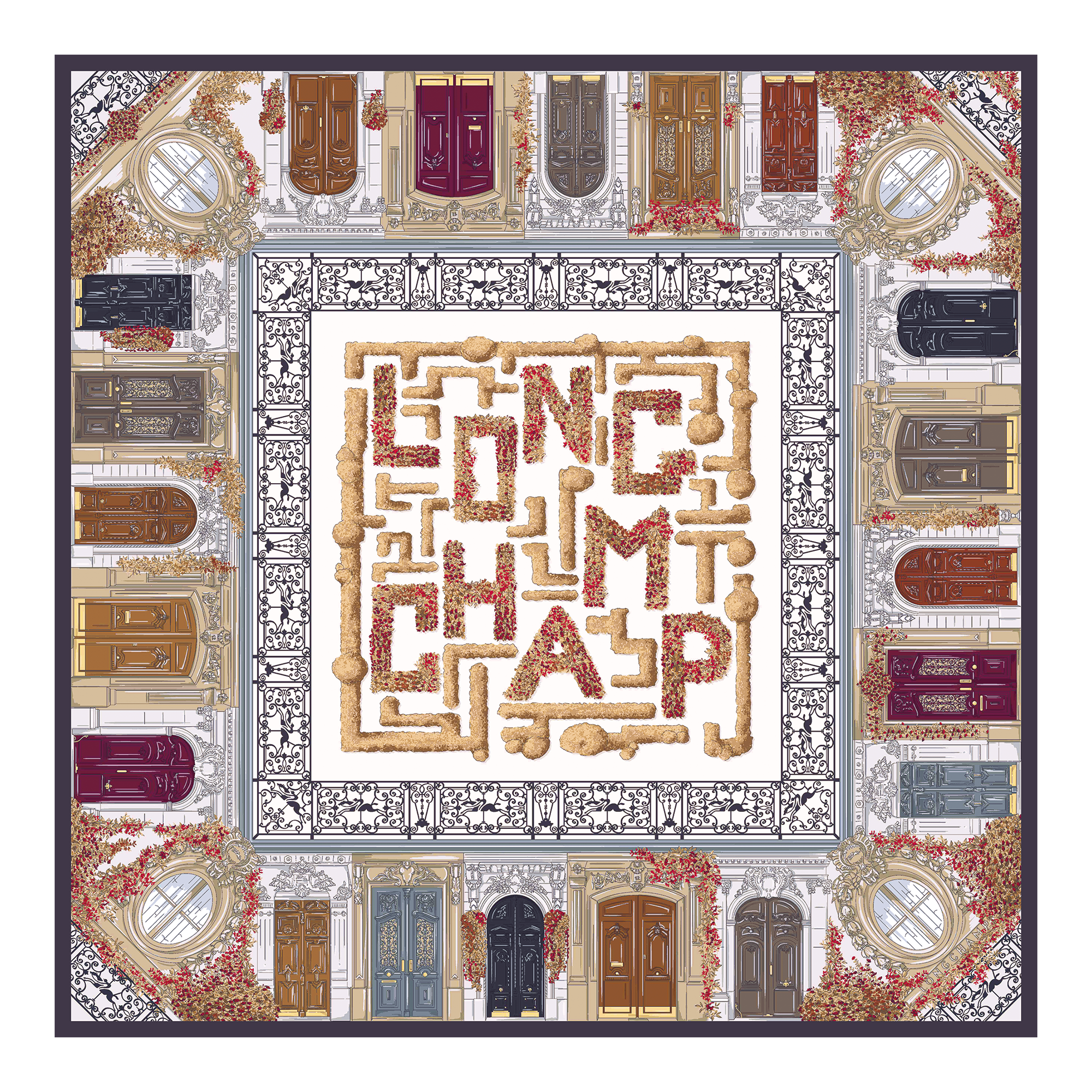 Dünyaca tanınan mimari zarafetleriyle bilinen saçaklı girişler, bu büyük ipek fuların üzerinde gizemli bir labirenti ortaya çıkararak sizi Paris’in kalbine doğru yönlendiriyor. Bu zarif parçayı omuzlarınıza alarak şık bir dokunuş katabilir ya da siluetinizi vurgulamak için kemer olarak kullanabilirsiniz.